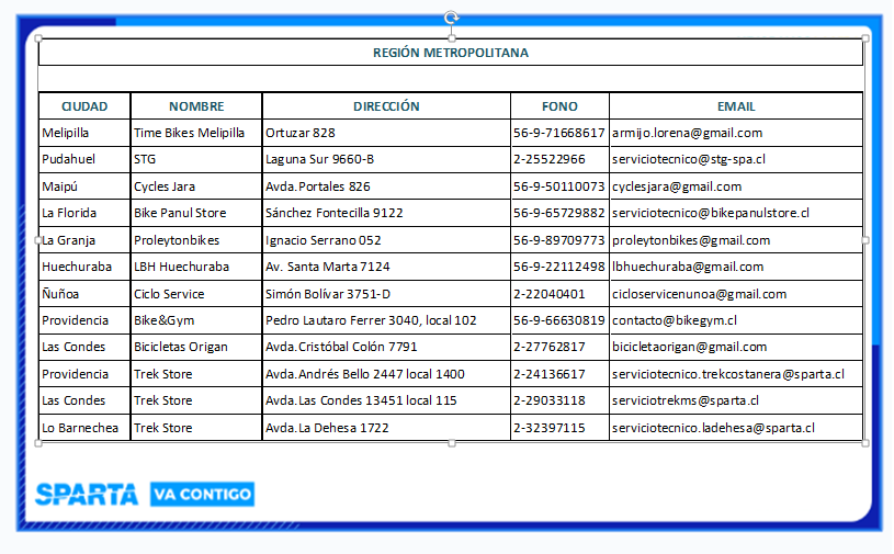 Revisa el detalle de nuestra red de servicio técnico autorizado Trek y Altitude: